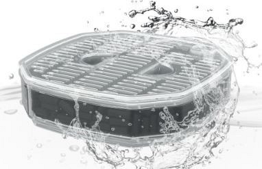 Filter met actieve kool. Het verwijdert opgelost organisch afval, slechte geuren, kleuren en giftige stoffen.