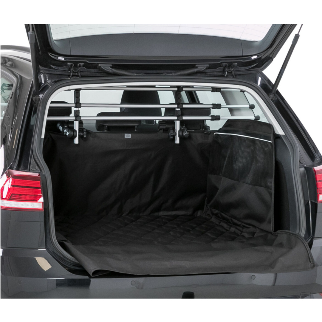 De TRIXIE kofferbakdeken heeft hoge zijkanten die de kofferbakbekleding beschermen. De deken wordt bevestigd aan de hoofdsteunen met gordels en aan de zijkanten met klittenband.