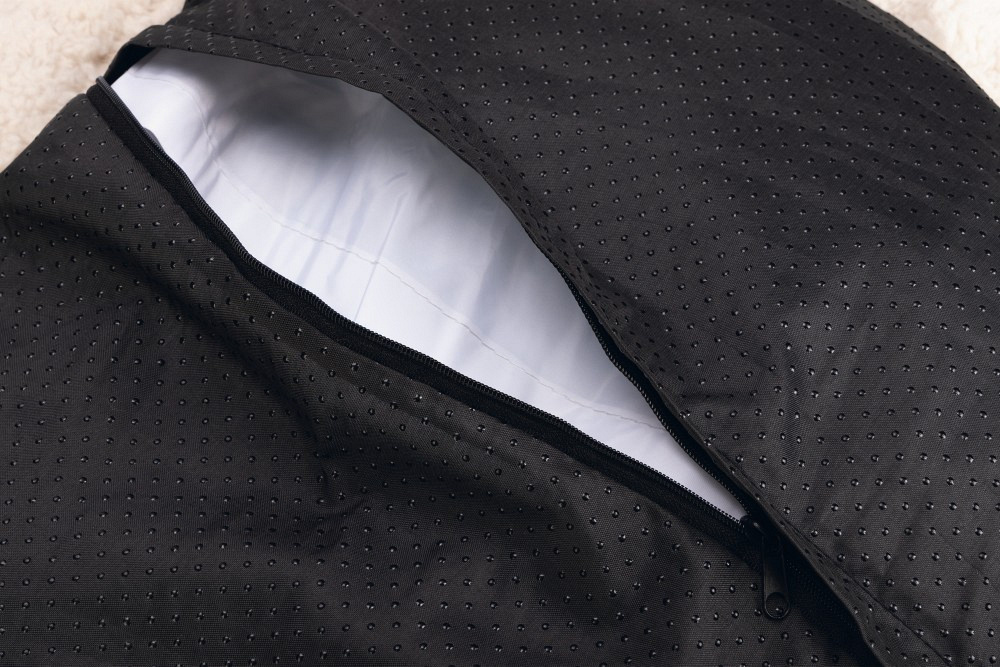 Deze mand heeft twee hoezen, een binnenhoes en een buitenhoes. De buitenhoes is wasbaar op 60 graden en de waterdichte kussenhoes is wasbaar op 30 graden. Daarnaast is de onderkant van het kussen gemaakt van een antislip stof, zodat de mand goed blijft liggen.