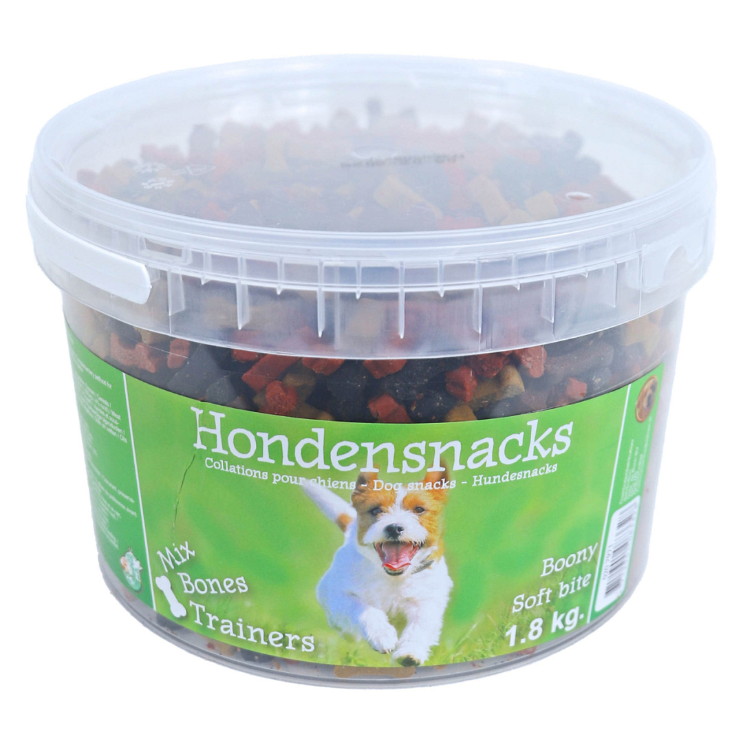 De Boony Semi Moist Bones Mix is een semi moist snack in de vorm van botjes. Ideaal om te geven als tussendoortje of als beloning tijdens het trainen.