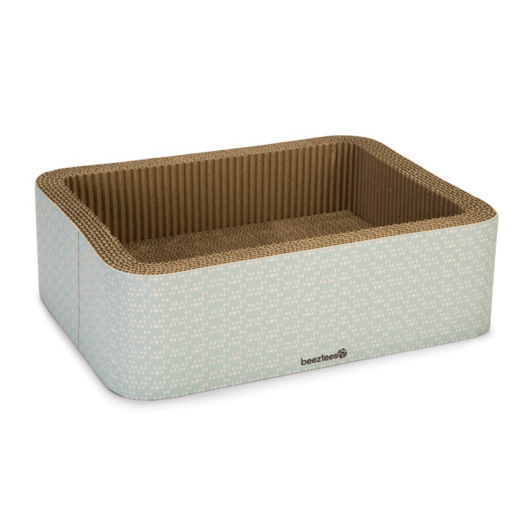 Kartonnen krabmand voor kittens met vrolijk motief om lekker in te kruipen en te krabben. Afm. 40 x 31 x 12 cm.