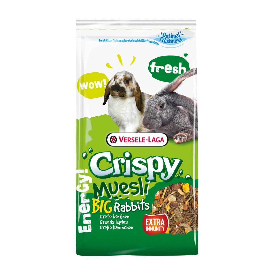 Versele-Laga Crispy muesli grote konijnen is een lekkere en vezelrijke kwaliteitsmengeling voor grote en buiten levende konijnen.