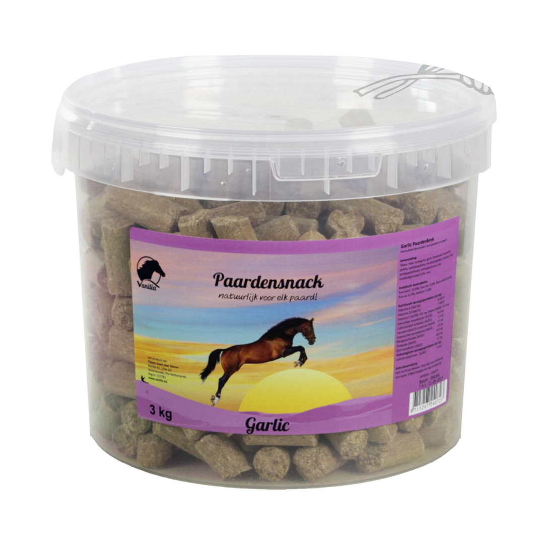 Vanilia paardensnack knoflook is dé Beloning voor alle paarden en pony's! Deze gezonde, stevige paardensnack is al jaren populair bij paarden en pony's.
